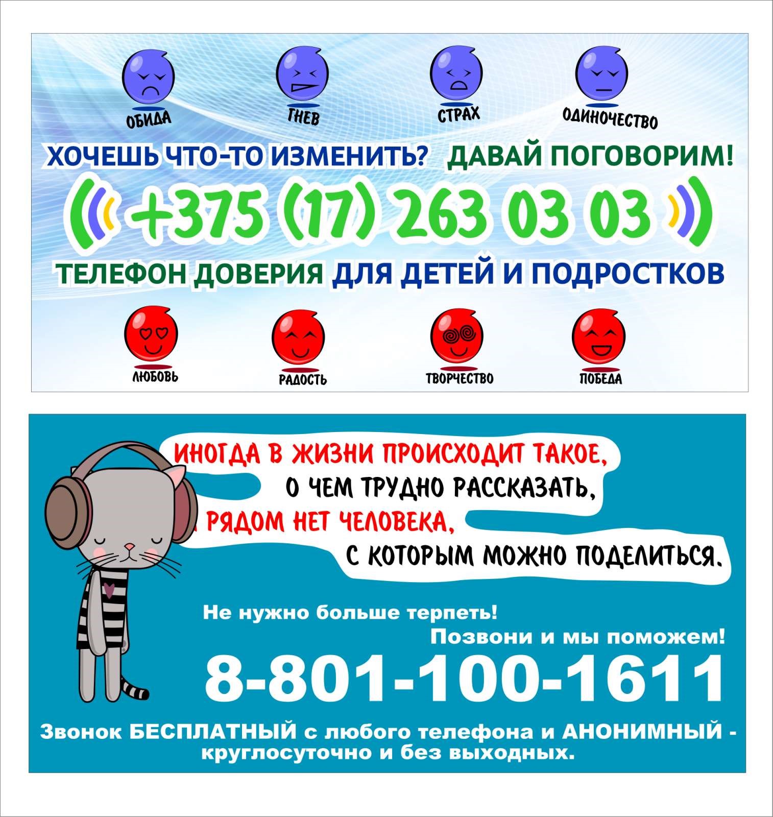 Республиканский центр психологической помощи –(+375 17 300 1006)