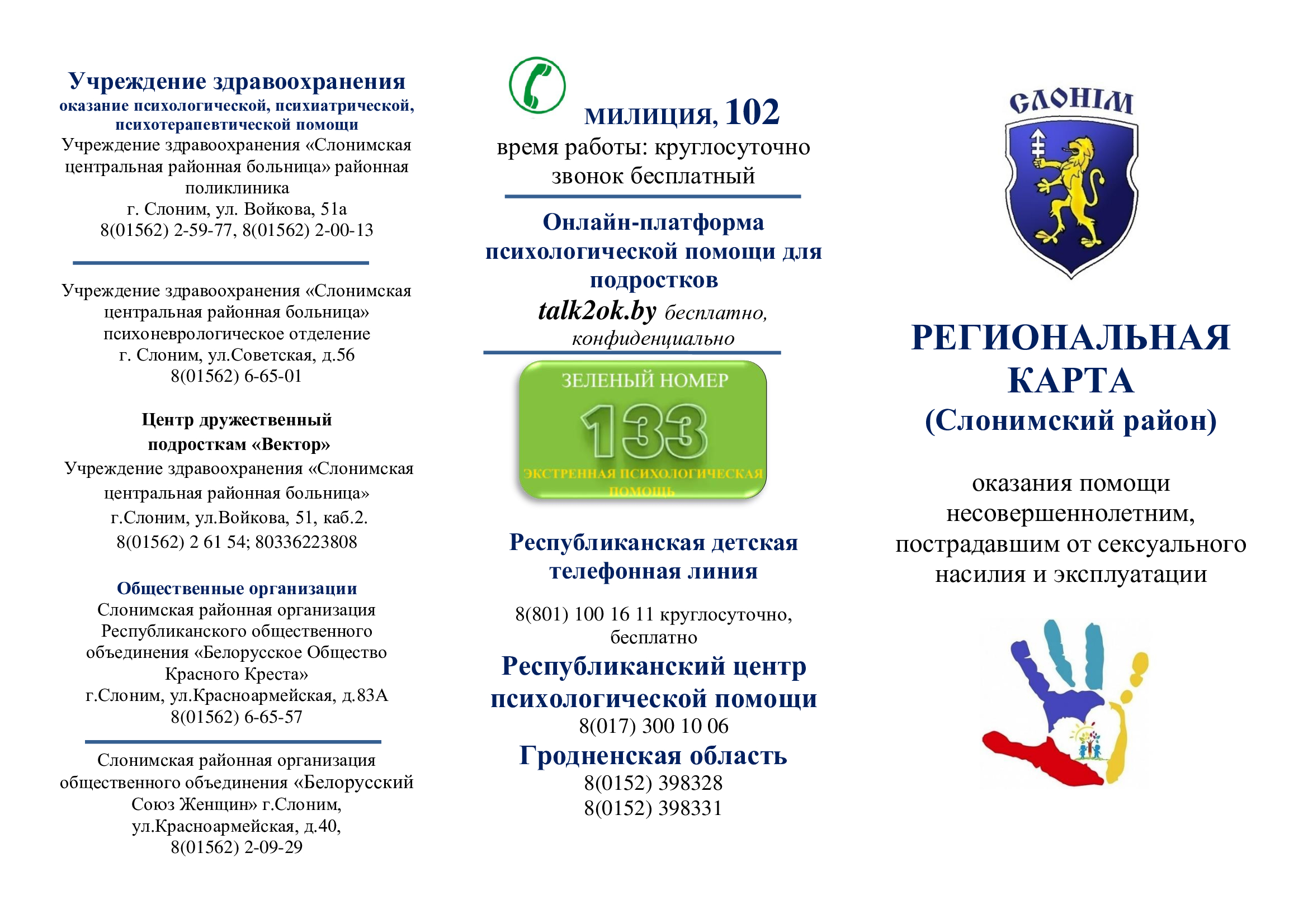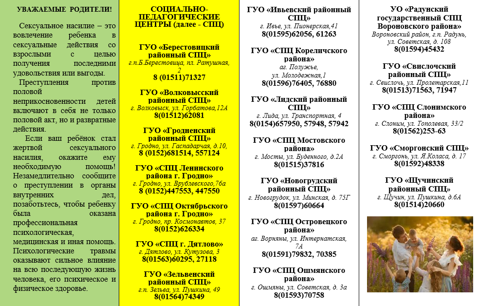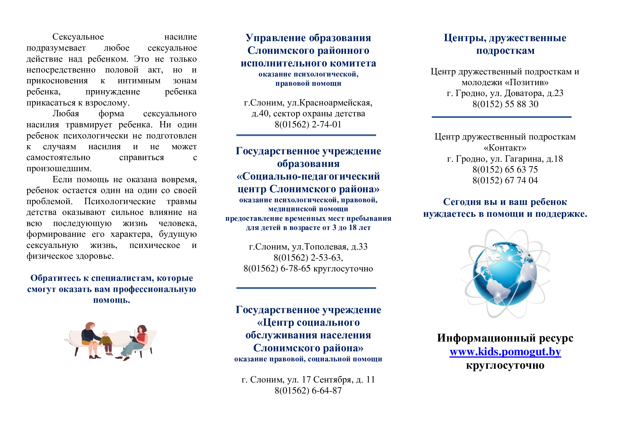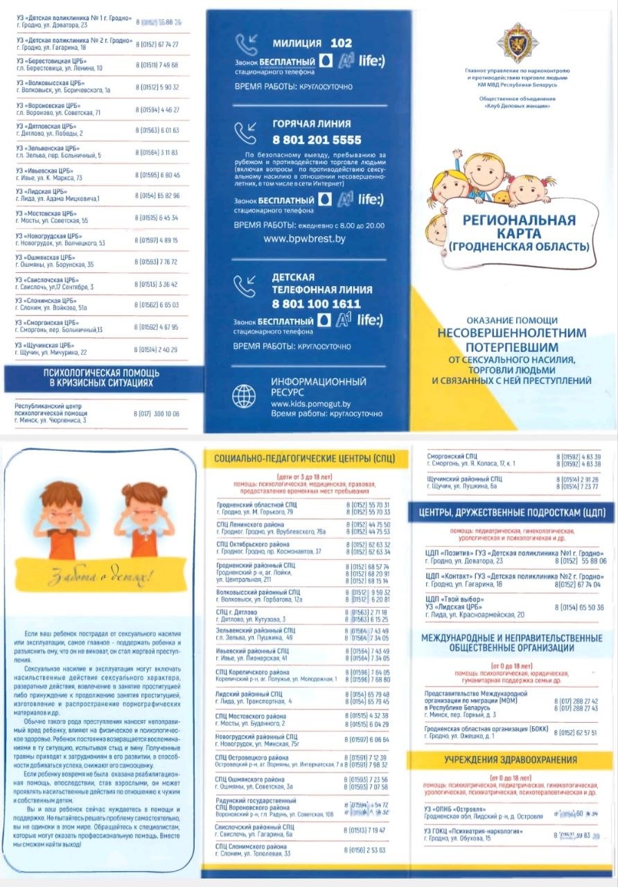Номер «Доверия» ГУО «Социально-педагогический центр Слонимского района» (+375 1562 25614),