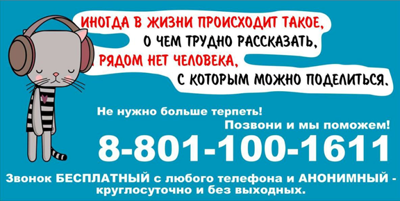 Республиканская «Детская телефонная линия 8-801-100-1611» по оказанию психологической помощи детям, оказавшимся в кризисном состоянии.